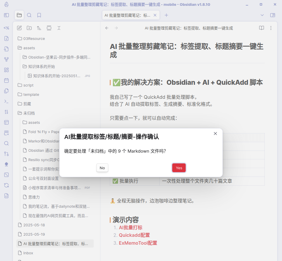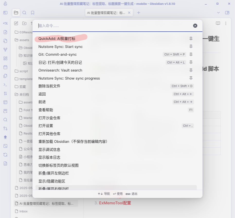 ✅我的解决方案:Obsidian + AI + QuickAdd 脚本