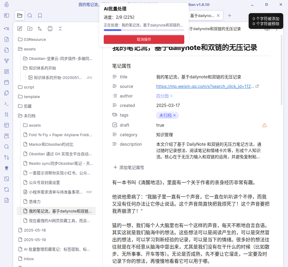 AI 批量整理剪藏笔记:标签提取、标题摘要一键生成