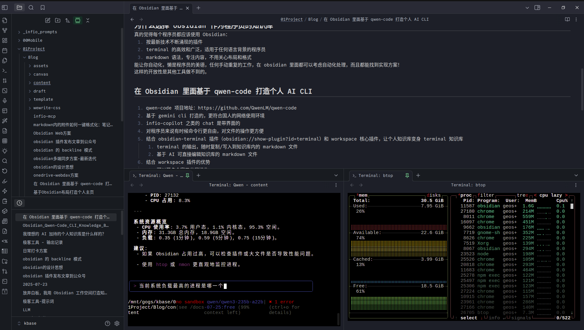 在 Obsidian 里面基于 qwen-code 打造个人 AI CLI