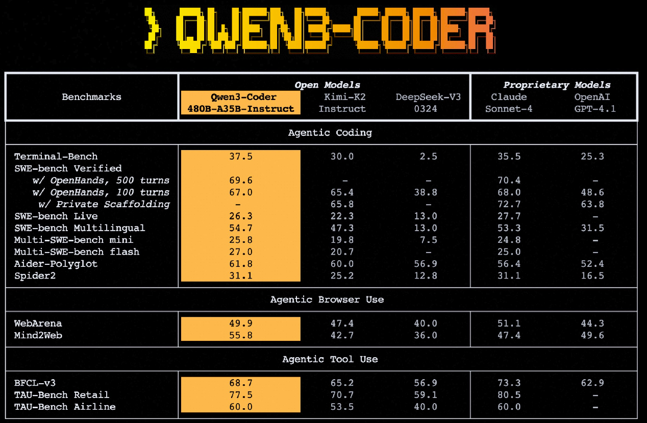 Qwen3-Coder-480B-A35B-Instruct a 480B-parameter Mixture-of-Experts model with 35B active parameters which supports the context length of 256K tokens natively and 1M tokens with extrapolation methods