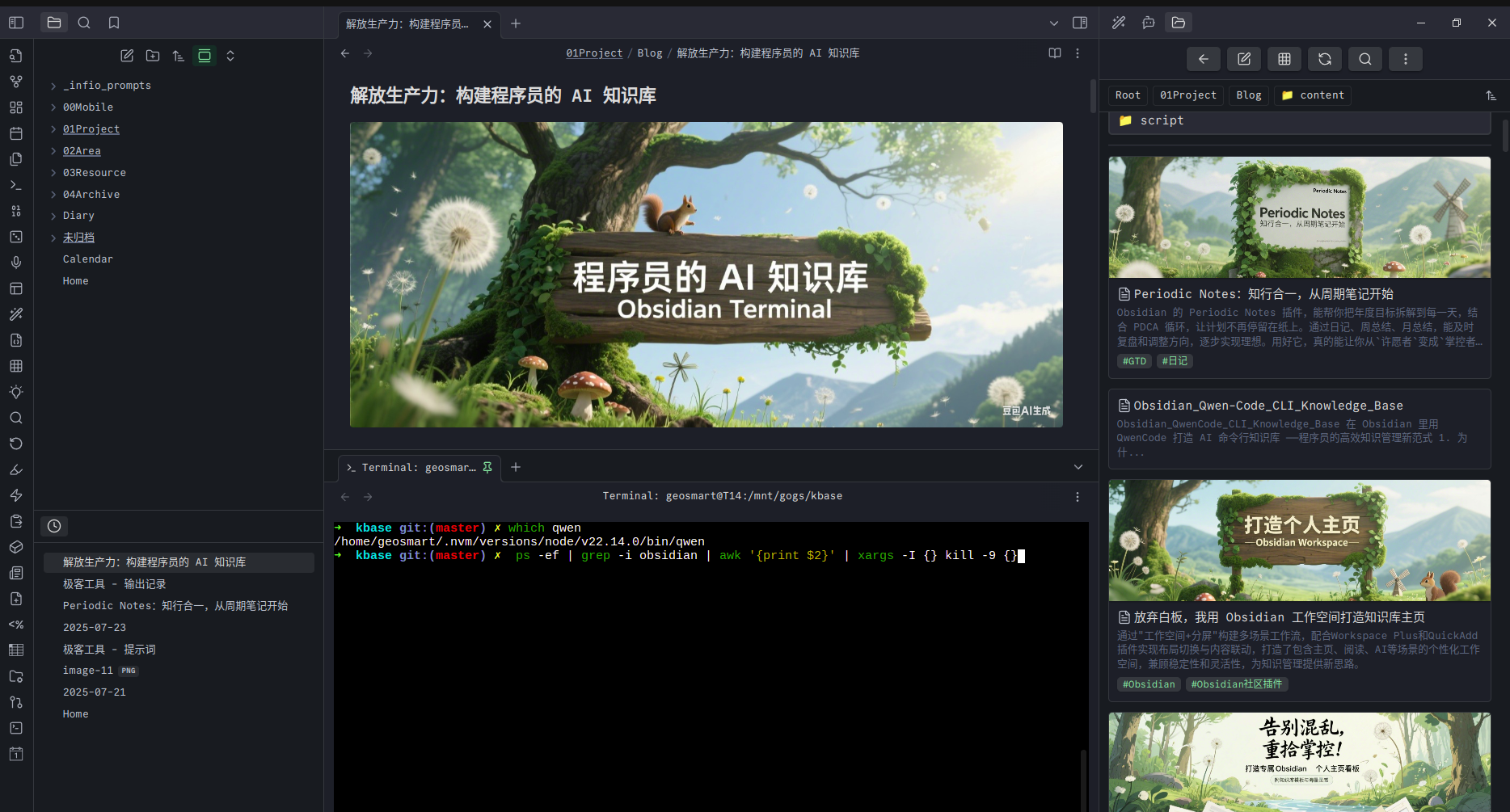 从最初的双链笔记,到如今内嵌终端与 AI 的助手引擎,我不断重塑的不仅是工具,更是自己的工作流。这套方法的核心是:用最直接的方式,将思考付诸实践。