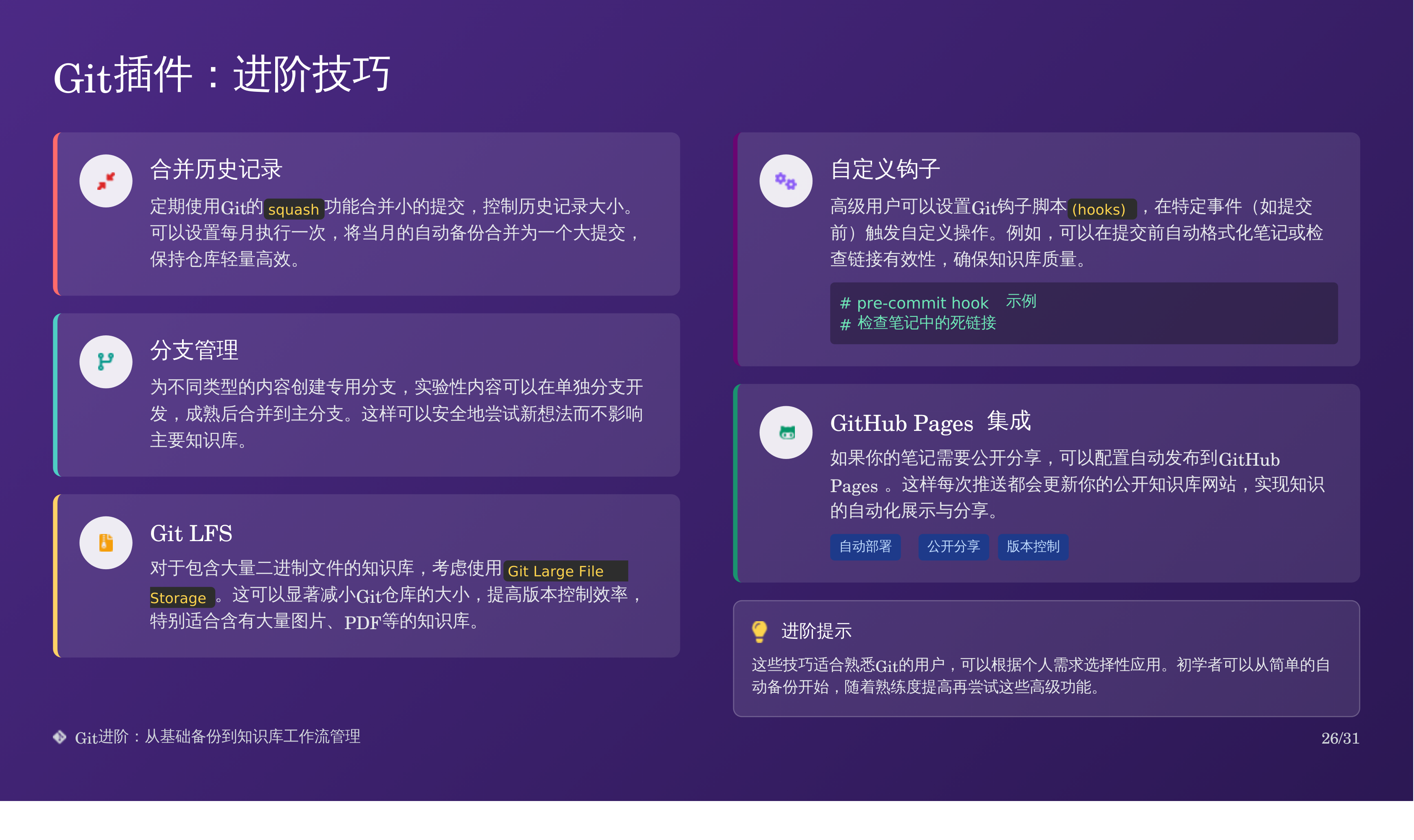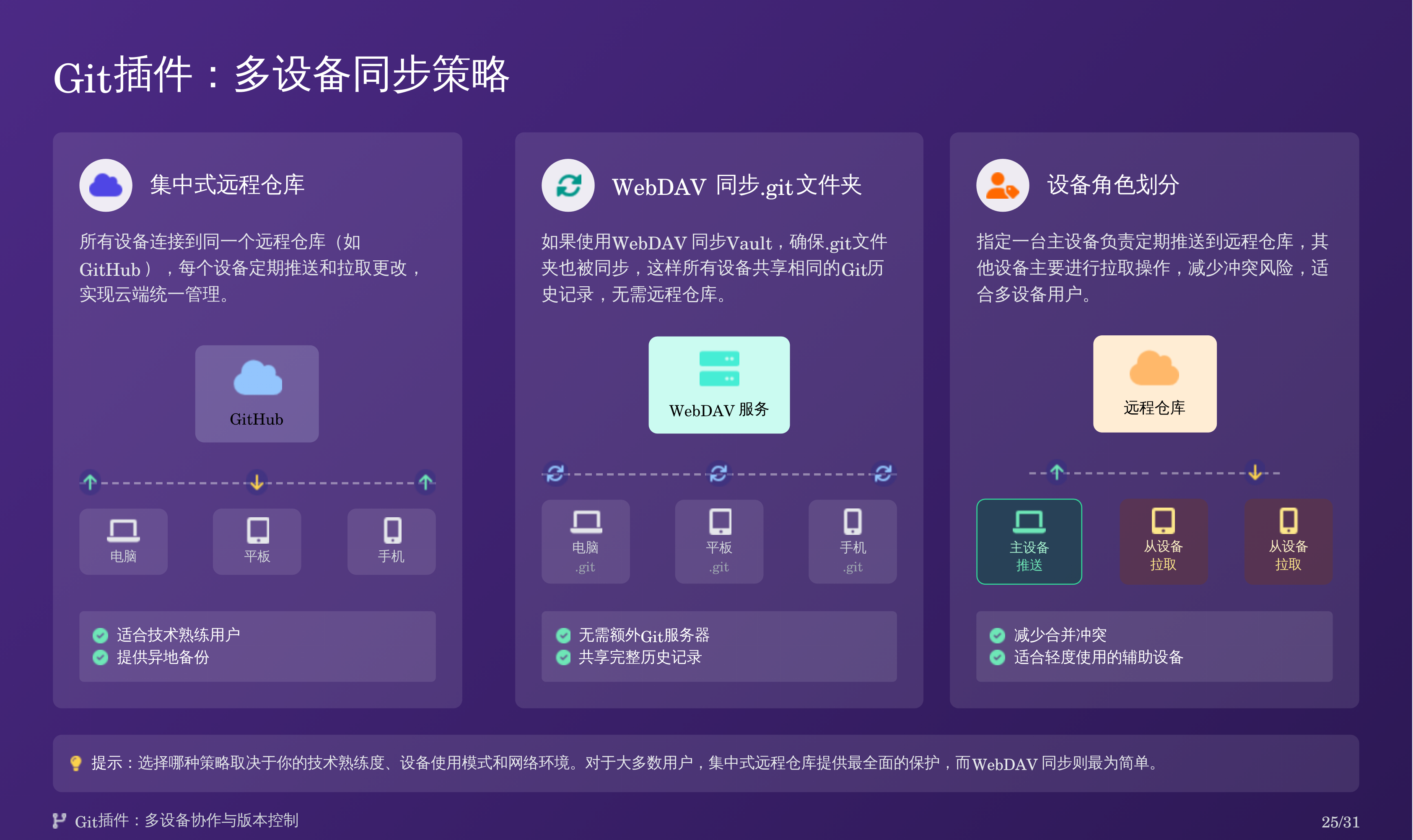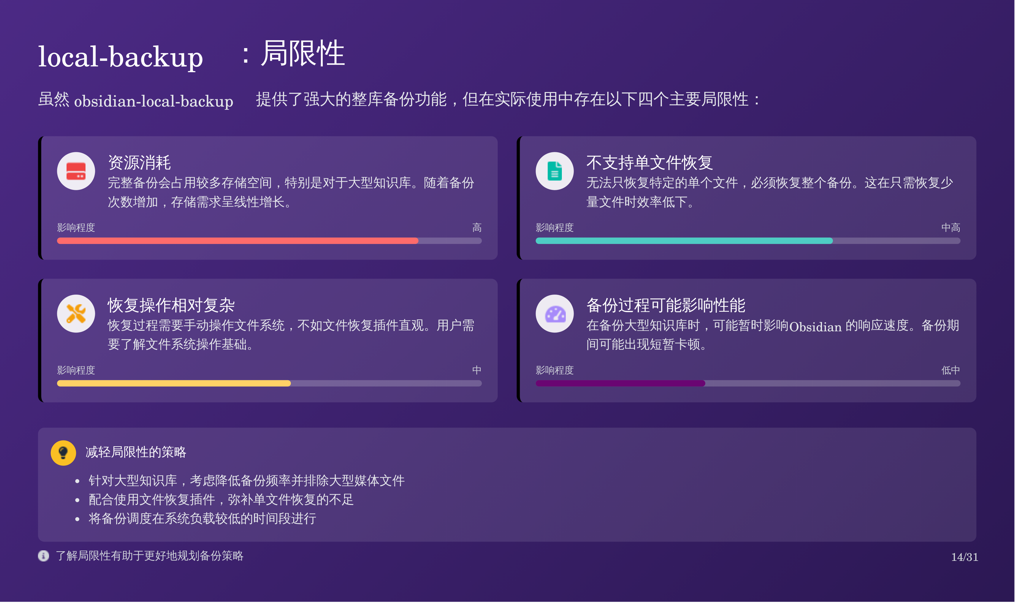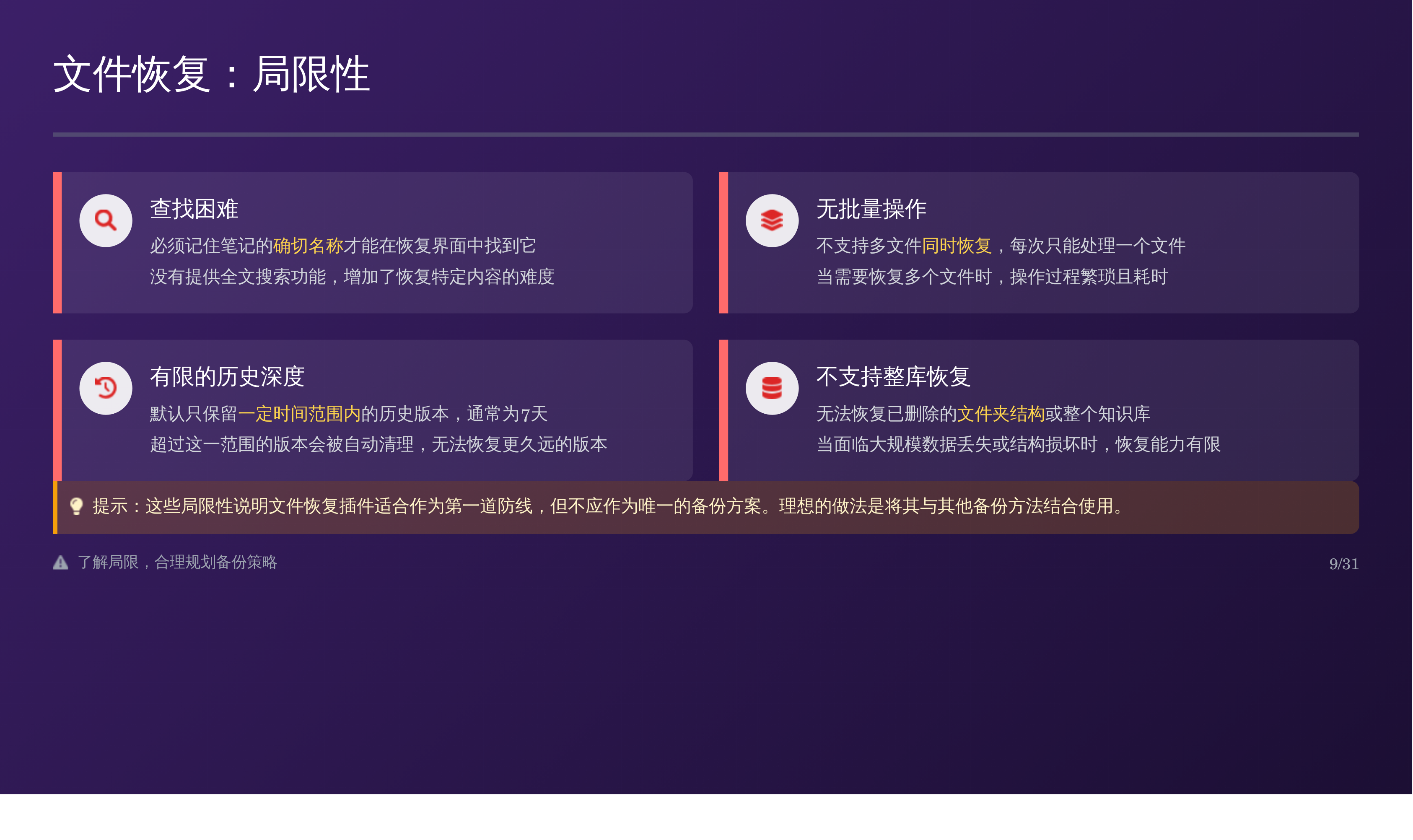 比如我上次分享的那篇 Obsidian 备份全攻略:三重方案搞定误删恢复,我用天工 AI 自动生成了对应的 PPT,效果如下: