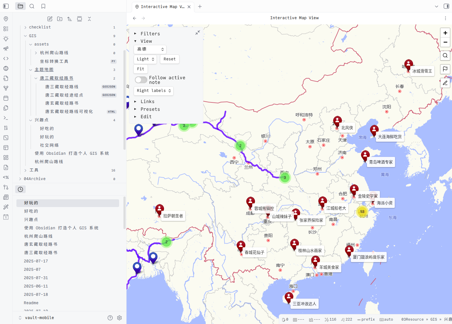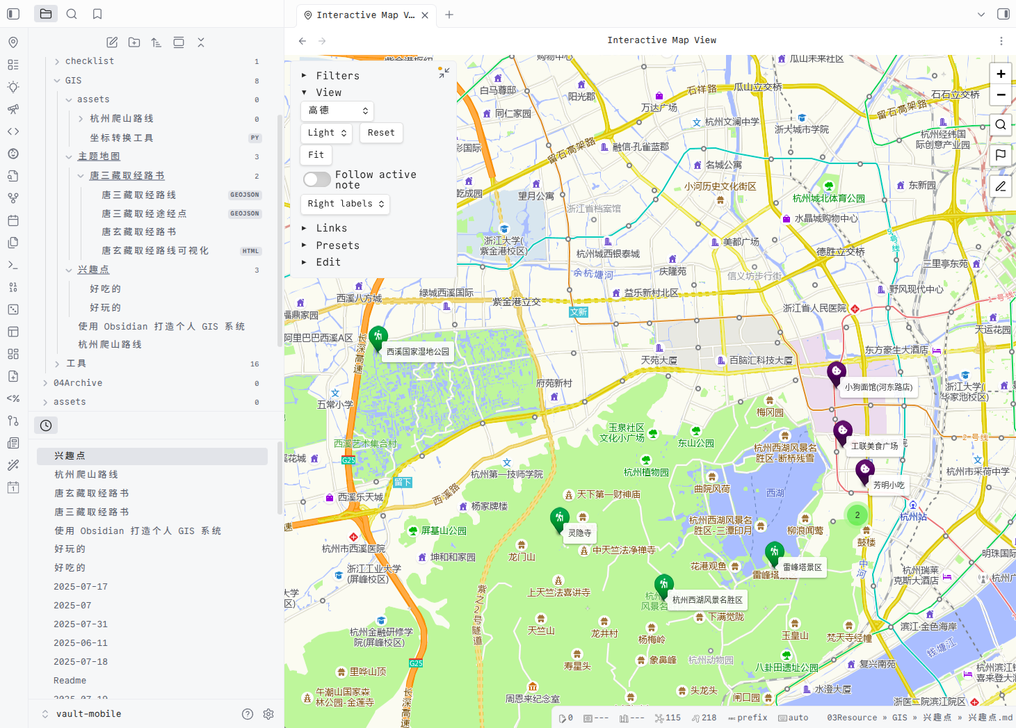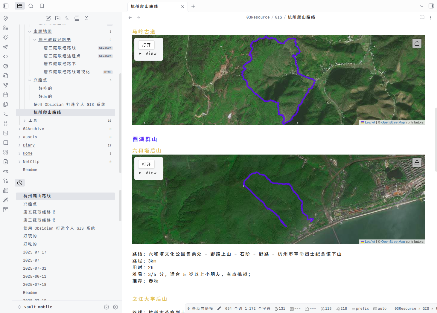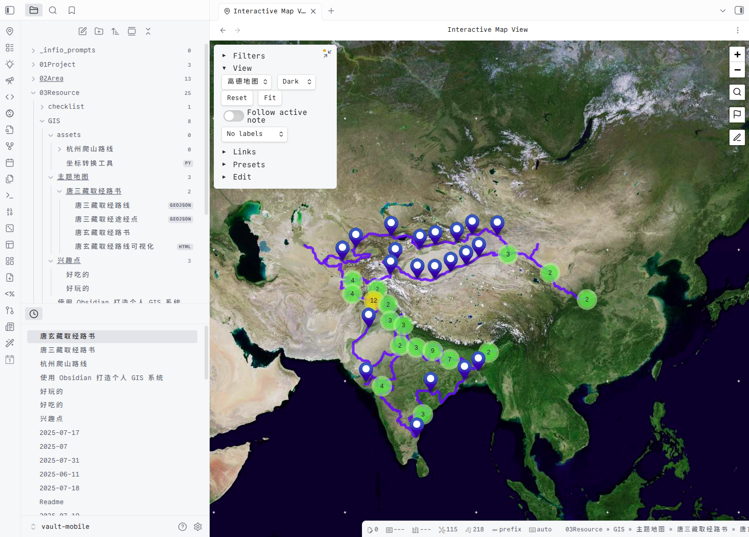 Obsidian x 高德地图:管理你的徒步轨迹