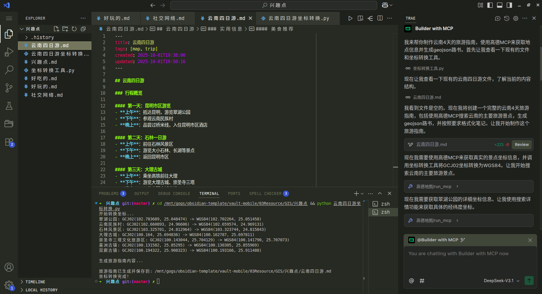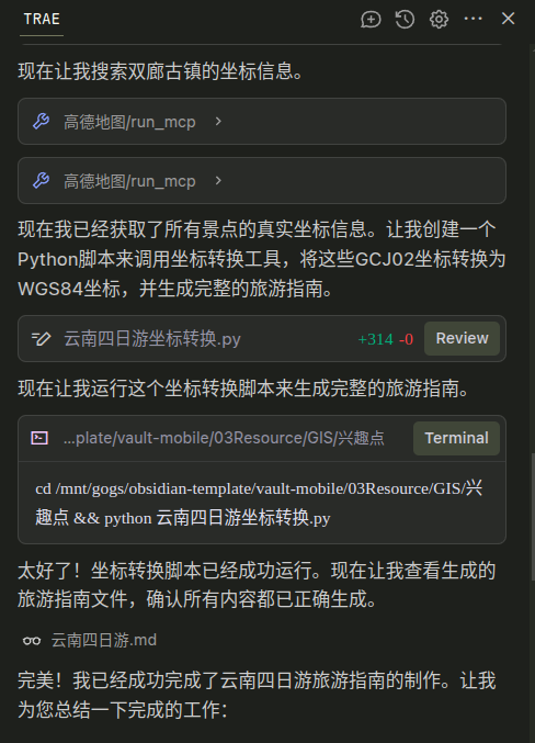 使用 trae 生成基础攻略,直接生成为 obsidian 的 markdown 笔记
