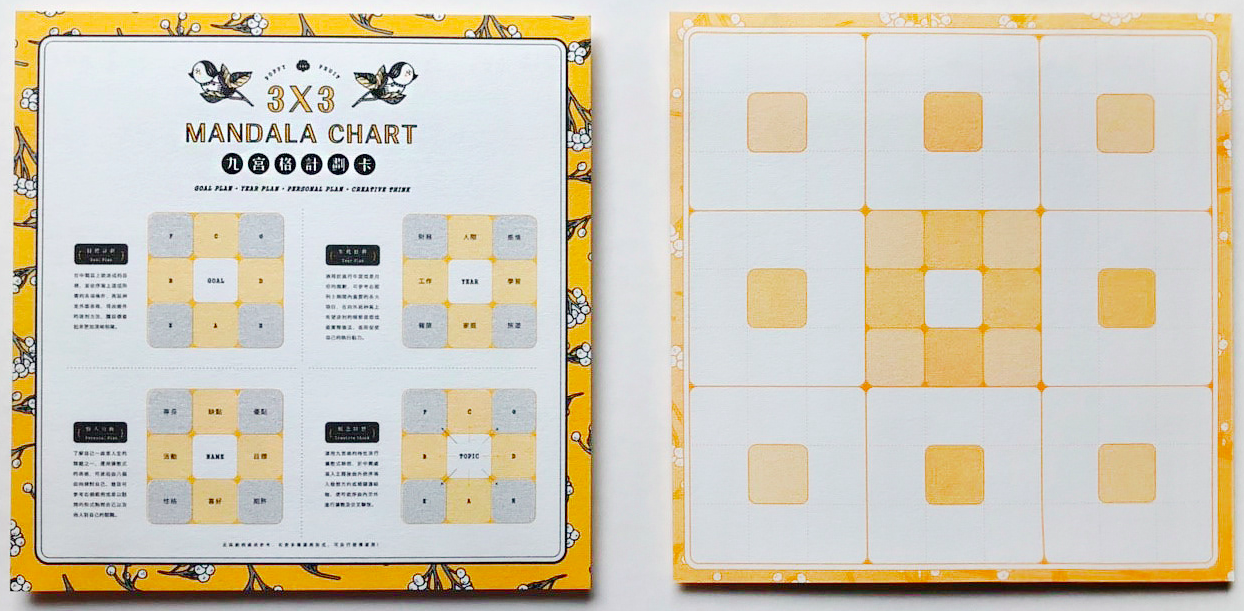 曼陀罗思考法,使用九宫格可视化方式,兼具广度和深度,实现多维思考