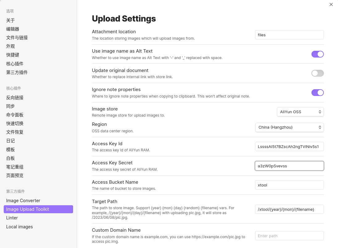 - 防坑指南:Obsidian 插件配置时,Bucket 名称带地域后缀(如 oss-cn-hangzhou)