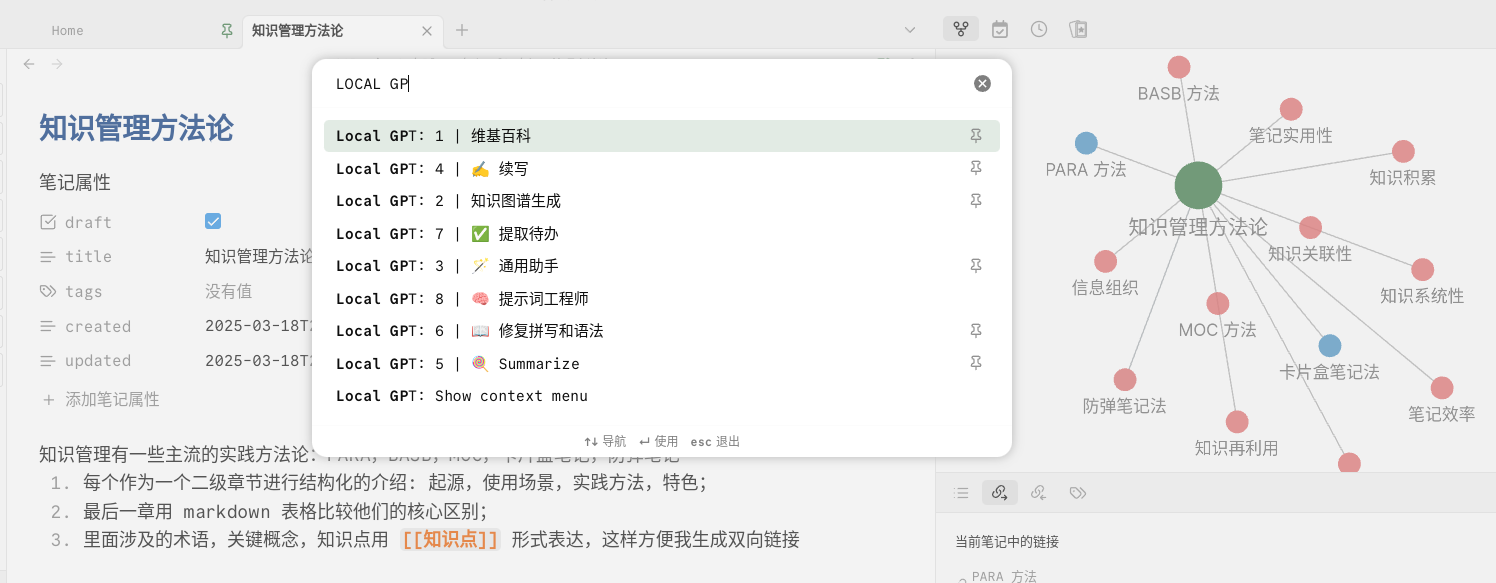 - 提示词管理插件:local-gpt,obsidian://show-plugin?id=local-gpt