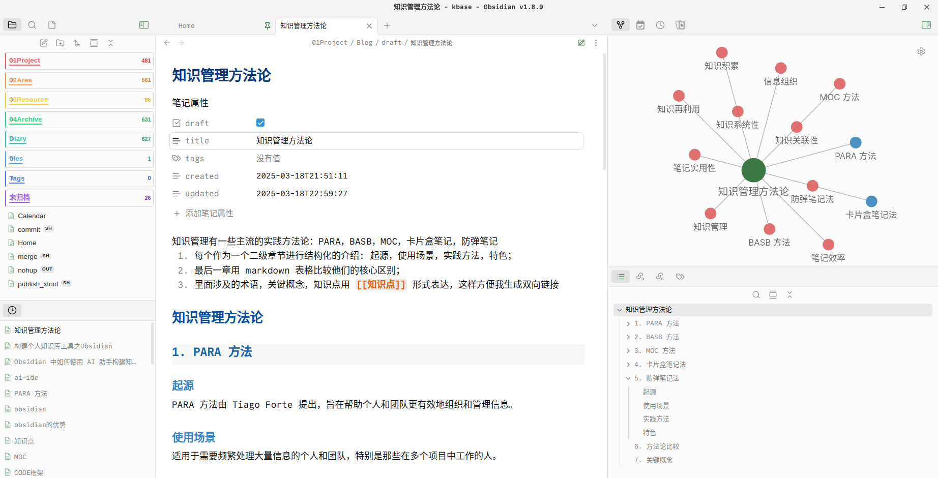 知识管理有一些主流的实践方法论:PARA,BASB,MOC,卡片盒笔记,防弹笔记