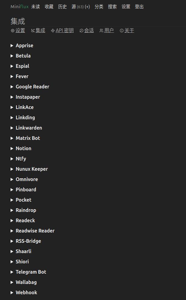 Miniflux 有强大的阅读生态集成